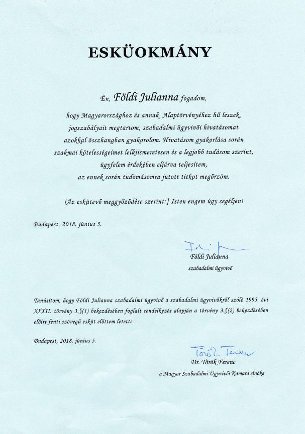 Nem ebből az aspektusból, de személyes történet – és innen inkább ilyenekre lehet számítani e bejegyzésben – pályafutásom egyik mérföldköve volt, amikor letettem a magyar szabadalmi ügyvivői esküt. Kamaránk épületében jelen lehettek – mert az akkori elnök, Dr. Török Ferenc lehetővé tette – azok a személyek, akiknek leginkább köszönhető, hogy eljutottam a szakma addigi állomásáig. Szóval ott lehetett az anyukám, a férjem, továbbá magyar mesterem, Dr. Markó József szabadalmi ügyvivő úr is. És gyönyörű kincsem: Flóra. Fontosnak tartottam, hogy ne csak anyukája hosszú, iparjogvédelemmel folytatott küzdelmének tanúja lehessen, hanem kislányként azt is láthassa, ha dolgozó anyaként néha mosolygok is a szakmám kapcsán. Az eskü szövegével összefüggésben azonban kell tennem két észrevételt: az egyik, amire egy “danubiás” kolléganőm hívta fel a figyelmemet: furcsa, hogy Magyarországhoz (ez rendben), de annak alaptörvényéhez is hűek kell legyünk. A másik pedig – meggyőződés szerint lehetett mondani az utolsó sort: “Isten engem úgy segéljen“. Amit én akkor, hithű ateistaként, nem tettem hozzá. Azonban akárcsak négy hónap múlva már máshogy történt volna…